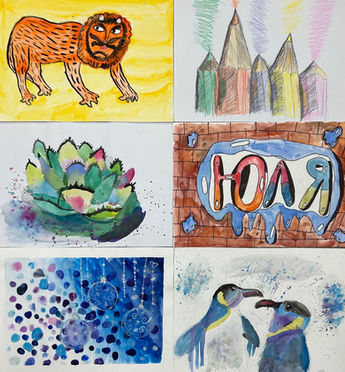 (матеріали: воскові олівці, гуаш, акварель, фломастери, олівці)